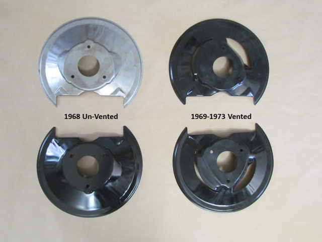 29 April 2017 - The disc brake dust shields for 1968 (non-vented) and 1969-1973 (vented) Mustang/Cougar applications are almost finished. Production has started and I should have parts to sell in a few weeks. Original dust shields are almost always pitted or bent beyond repair. These are the only concours correct parts available. Non-vented 1968 dust shields have never been available until now, and the vented ones offered currently are not correct. Copied from original assembly line parts to exactly match the originals right down to the stretch marks, and painted semi-gloss black.